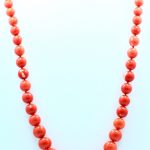 Lot 94: 7.5mm-16.2mm Pacific Ocean Coral 20″ Graduated Necklace W/Solid 18K White Gold & Diamond Clasp RARE. This stunning piece is made of red and bi-color red 7.5mm-16.2mm Pacific Ocean Coral. This is the rarest coral in the world, and this piece was exclusively made for the Royal family after an exhibition of Pacific Coral in 2012.