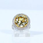 Lot 4D: 8.27ct VS1/Fancy Brown/Yellow GIA Certified Diamond, 2ctw Genuine VS1 White Diamonds & Solid 18K White & Yellow Gold Ring (Nguyen Family Owned). This piece stunning piece came from the Royal Nguyen family jewelry collection, and has never been offered at auction. This piece was custom made for the grand-daughter of the Empress. The ring has a stunning double-shank design, diamond lined shoulders and a stunning foliate and floral filigree undercarriage.